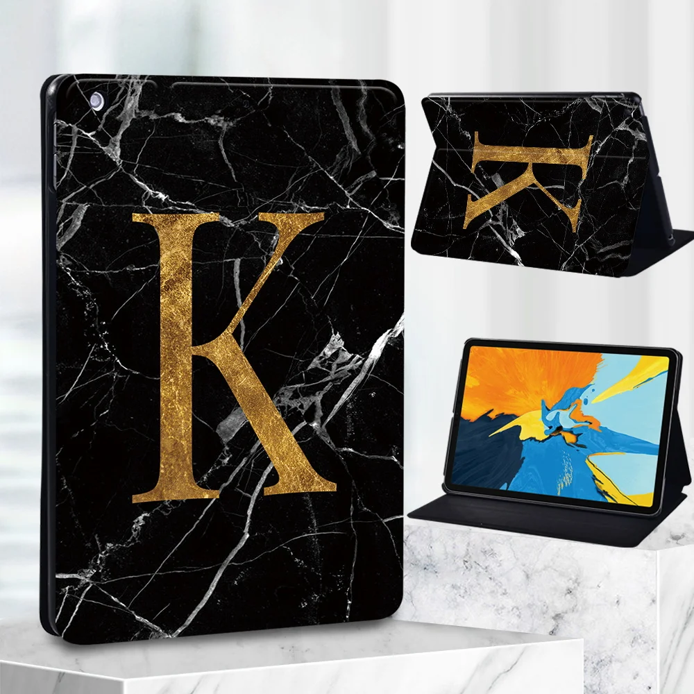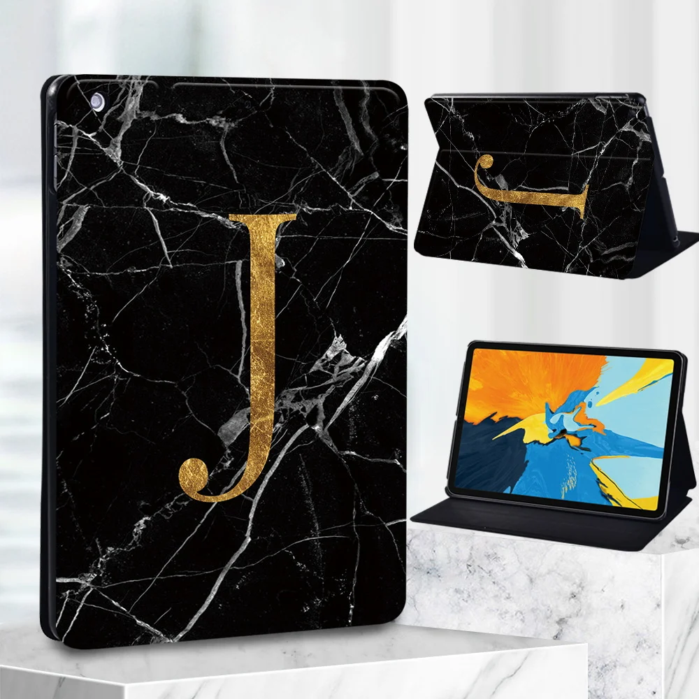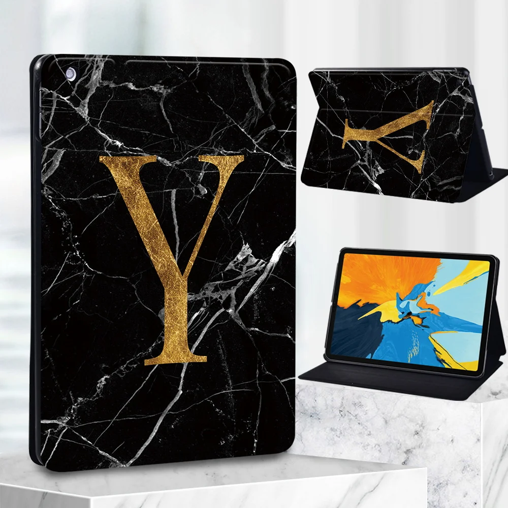 Чехол для планшета Lenovo Tab M10Tab E10Tab M10 Plus TB-X606FX из искусственной кожи с черным мраморным рисунком и 26 буквами
