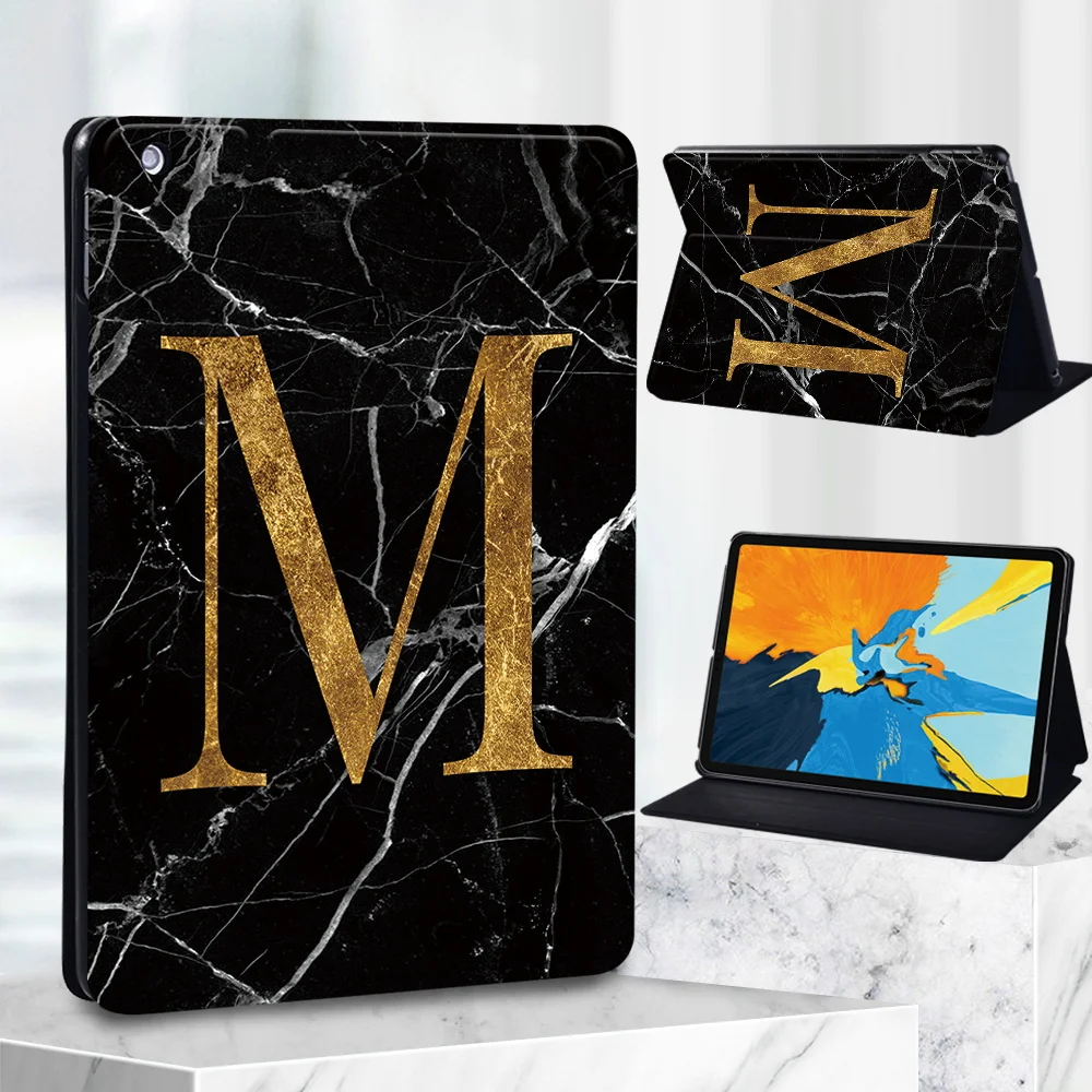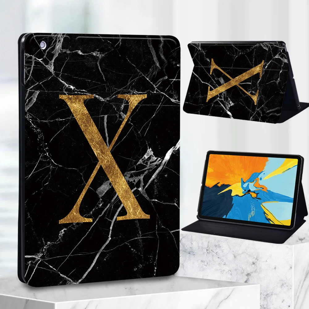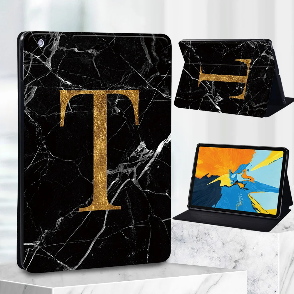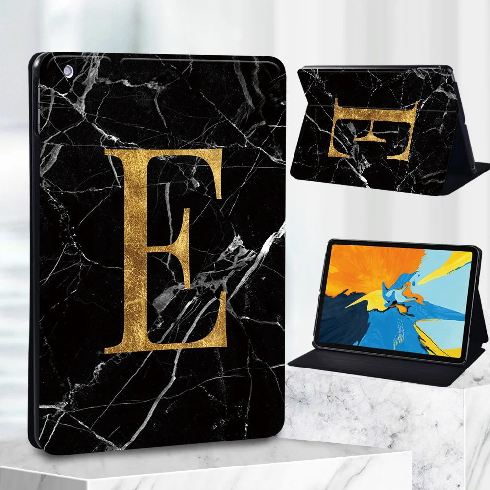 Чехол для планшета Lenovo Tab M10Tab E10Tab M10 Plus TB-X606FX из искусственной кожи с черным мраморным рисунком и 26 буквами