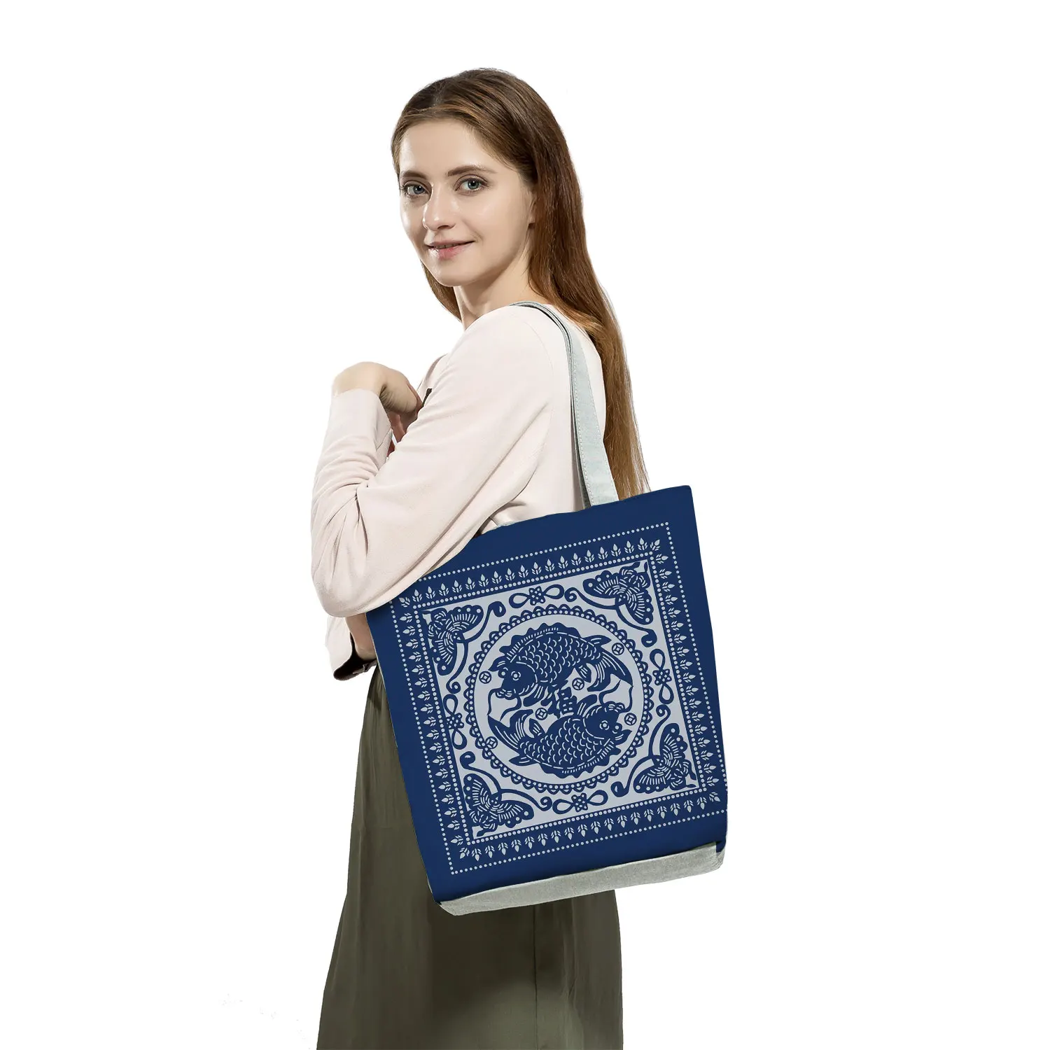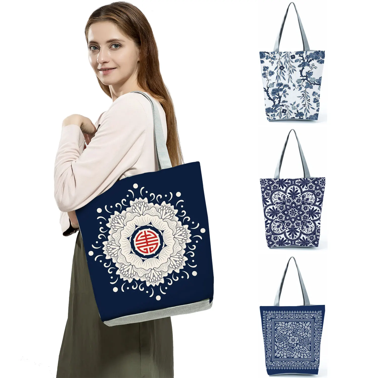 Классическая Дамская сумочка в китайском стиле, наплечная сумка с абстрактным рисунком, с цветочным и фарфоровым принтом, повседневный тоут для книг для подростков, шоппинг