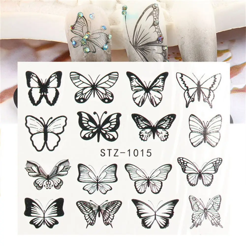 Наклейки для ногтей с черными бабочками, наклейки с белыми цветами,...