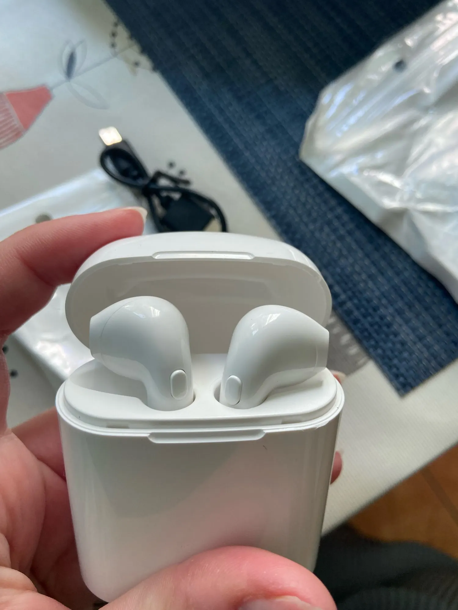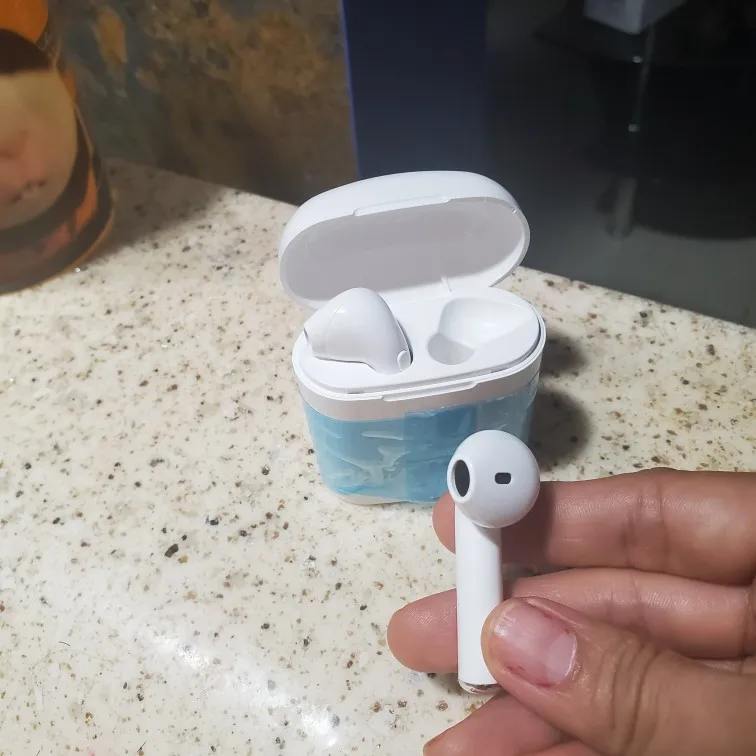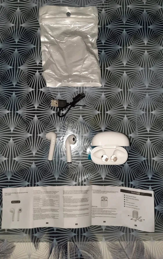Выглядит и на ощупь хорошо, хорошо упакован. Качество звука немного меньше, чем у Apple airpods, но они стоят всего 2 евро, поэтому никаких жалоб нет
