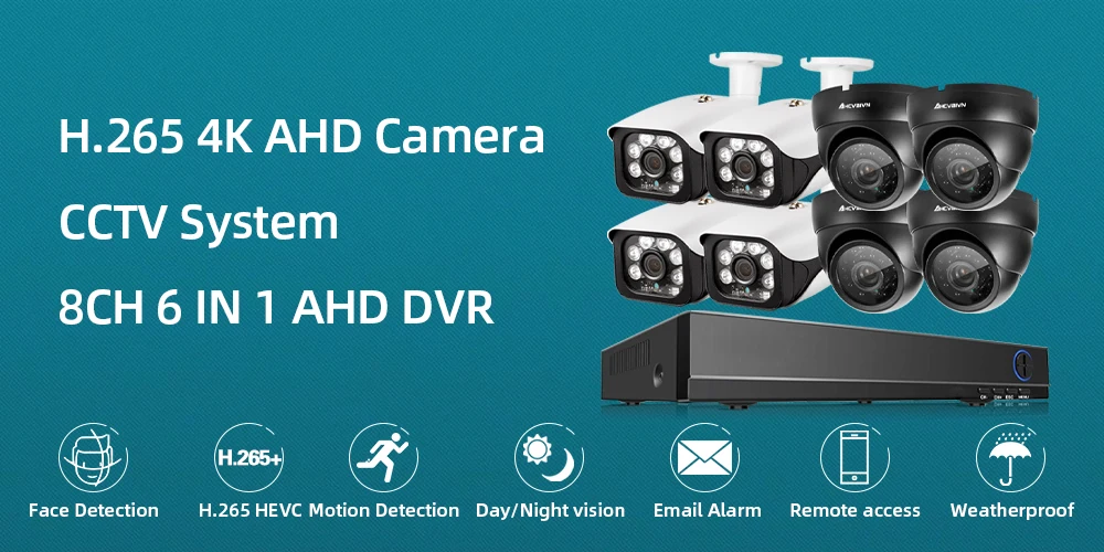 1, Ультра HD 4K дисплей высокой четкости, 6 в 1 гибридный цифровой видеорегистратор;2. Ультра HD 8MP AHD камера, металлический материал, IP66 водонепроницаемый, подходит для внутреннего и наружного использования; Пыленепроницаемый, надежный для домашней безопасности;4. Улучшенное H.265 Сжатие видео, подключи и работай, простая настройка;3. Поддержка распознавания лица, воспроизведения лица, обеспечивает ультра высокое разрешение видео наблюдения, обеспечивая максимальную детализацию и четкость доступны;4. Все камеры поддерживают расстояние передачи 500 метров, ночное видение до 30-40 м с умным ИК, четкое дневное и ночное видение с автоматическим ИК-излучением;6. Поддержка обнаружения движения, оповещения по электронной почте, воспроизведения видео и многоязычности;7. Поддержка Android,Iphone,Ipad,PC,VMS,P2P view;8. Удаленный доступ в любом месте, в любое время;