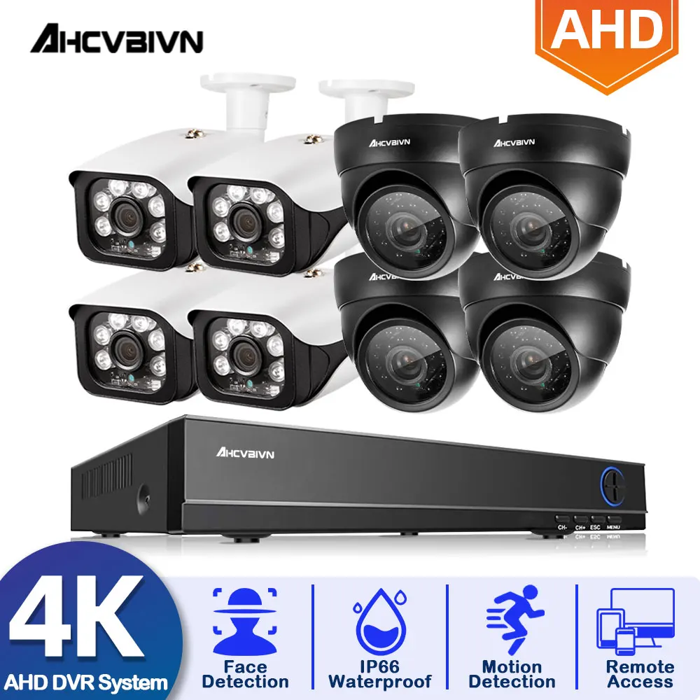 Купольная камера дневного и ночного видения 4K 8 Мп HD наружная система видеонаблюдения 8 каналов DVR AHD Водонепроницаемая цилиндрическая камера комплект системы видеонаблюдения