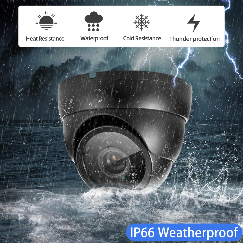 Используйте их в качестве наружных камер или крытых камер, так как они построены жестко, выдерживает любую погоду: дождь, снег, пыль и жаркие дни. С защитой от атмосферных воздействий IP66 и кабелями, просвечивающимися через подставку для защиты, гарантируем, что вы сможете ответить на их производительность, день в день. Наша камера имеет сверхпрочный металлический корпус, профессиональный IP66, устойчивый к атмосферным воздействиям, обеспечивая стабильную производительность как внутри, так и снаружи.