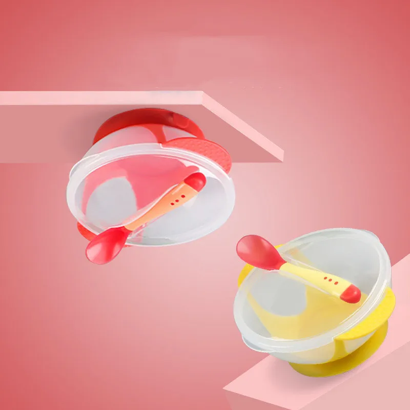 Ложка для кормления с датчиком температуры, детская посуда, миска для еды, Обучающие блюда, тарелкалоток, присоска, набор детской посуды