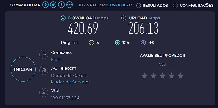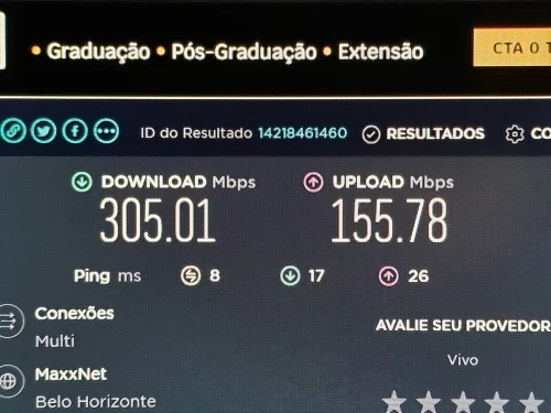 Отличный продукт, работает очень хорошо, может взять кабель RJ45, для моего Интернета 300 МБ он может доставить общую скорость загрузки и вверх! К сожалению, для того, чтобы получить посылку, продавец побрился навсегда, однако Доставка в пределах Китая была очень медленной, в Бразилии было уже быстрее, все еще прошло длительное время после предполагаемого времени, примерно 17 дней после этого времени! Рекомендуемый товар