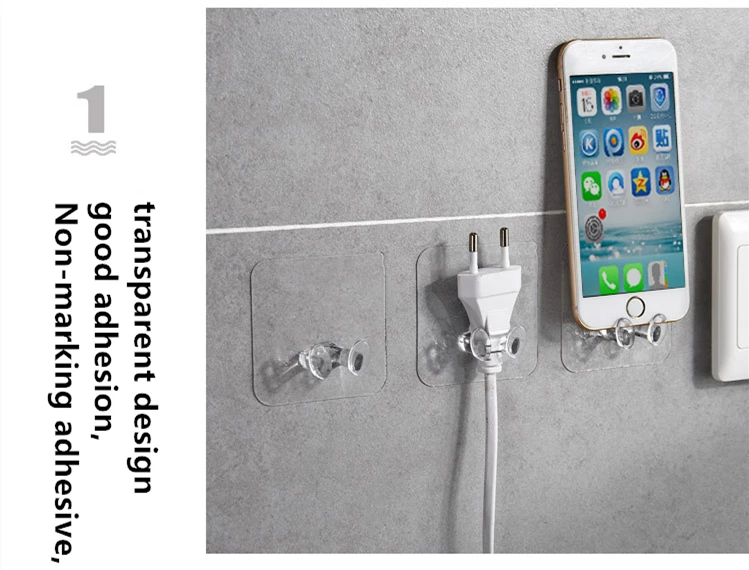 1 шт. крючок для хранения, Прозрачный Прочный липкий настенный крюч...