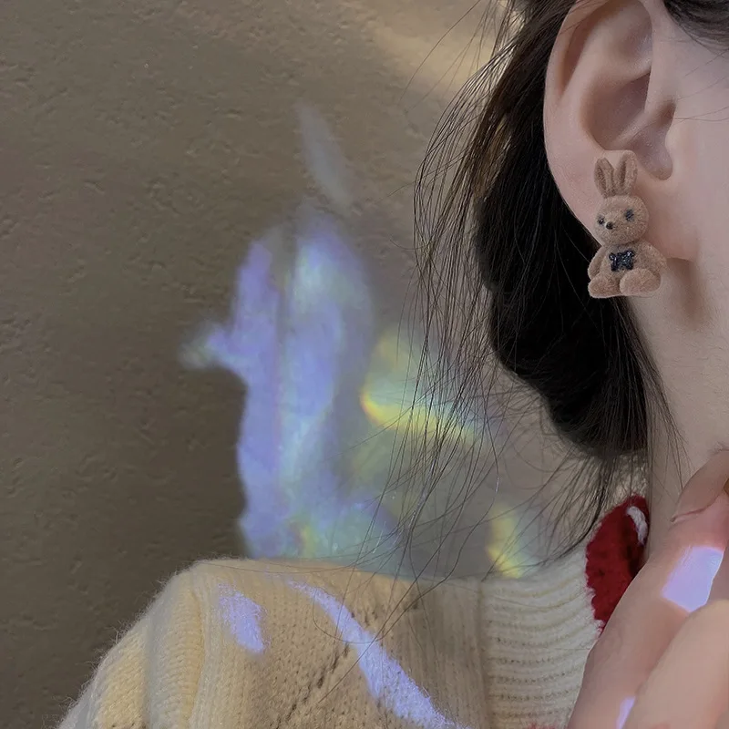 Флокированные плюшевые серьги-гвоздики в виде кроликов и медведей, ...