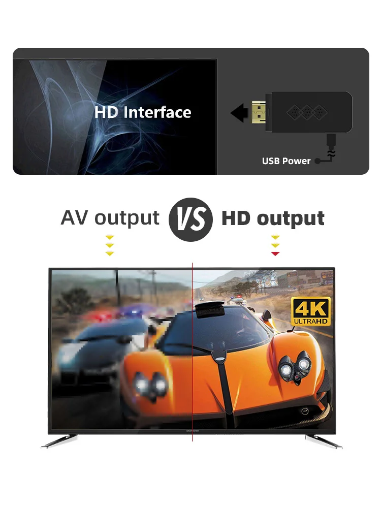 Игровые консоли Y2HD и Y2S HD Plus поддерживают выход 4k HD. Самое главное, оба совместимы с выходом домашнего проектора. Вам больше не придется беспокоиться о домашнем телевизоре, который не может поддерживать выход 4K HD, и вы пропустите игру. До тех пор, пока у вас есть проекционное устройство, проектор имеет HD выходной интерфейс, без каких-либо настроек и работы, подключи и работай. Вы можете наслаждаться счастливой игрой. Наша игровая консоль поддерживает различные способы использования, с радостью следую за вами.