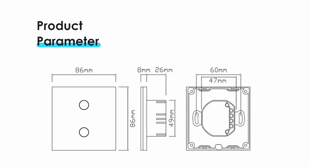 Примечание: ЕС квадратный (86 мм * 86 мм)