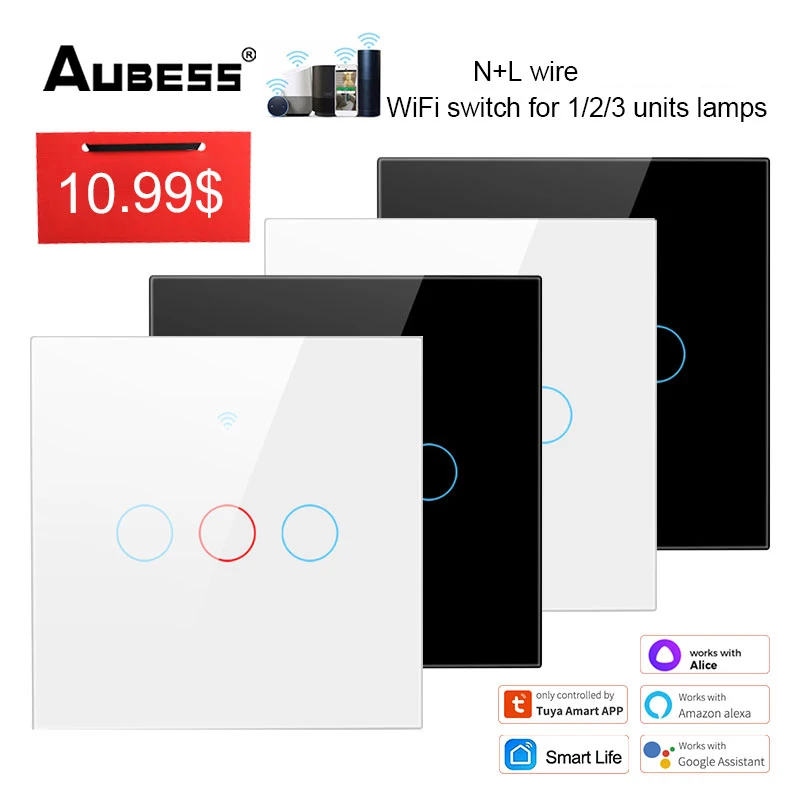 Умный светильник ель света Aubess Tuya, Wi-Fi релейный модуль 1234 Gang Smart LifeTuya, управление через приложение, работает с Alexa Google Home, 110 В, 220 В