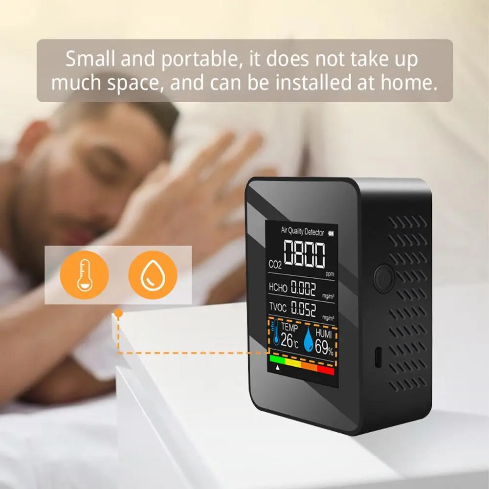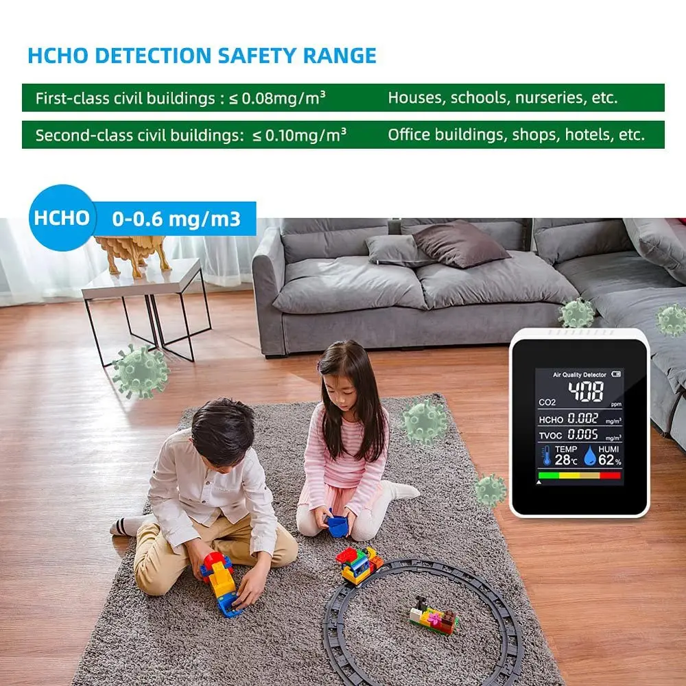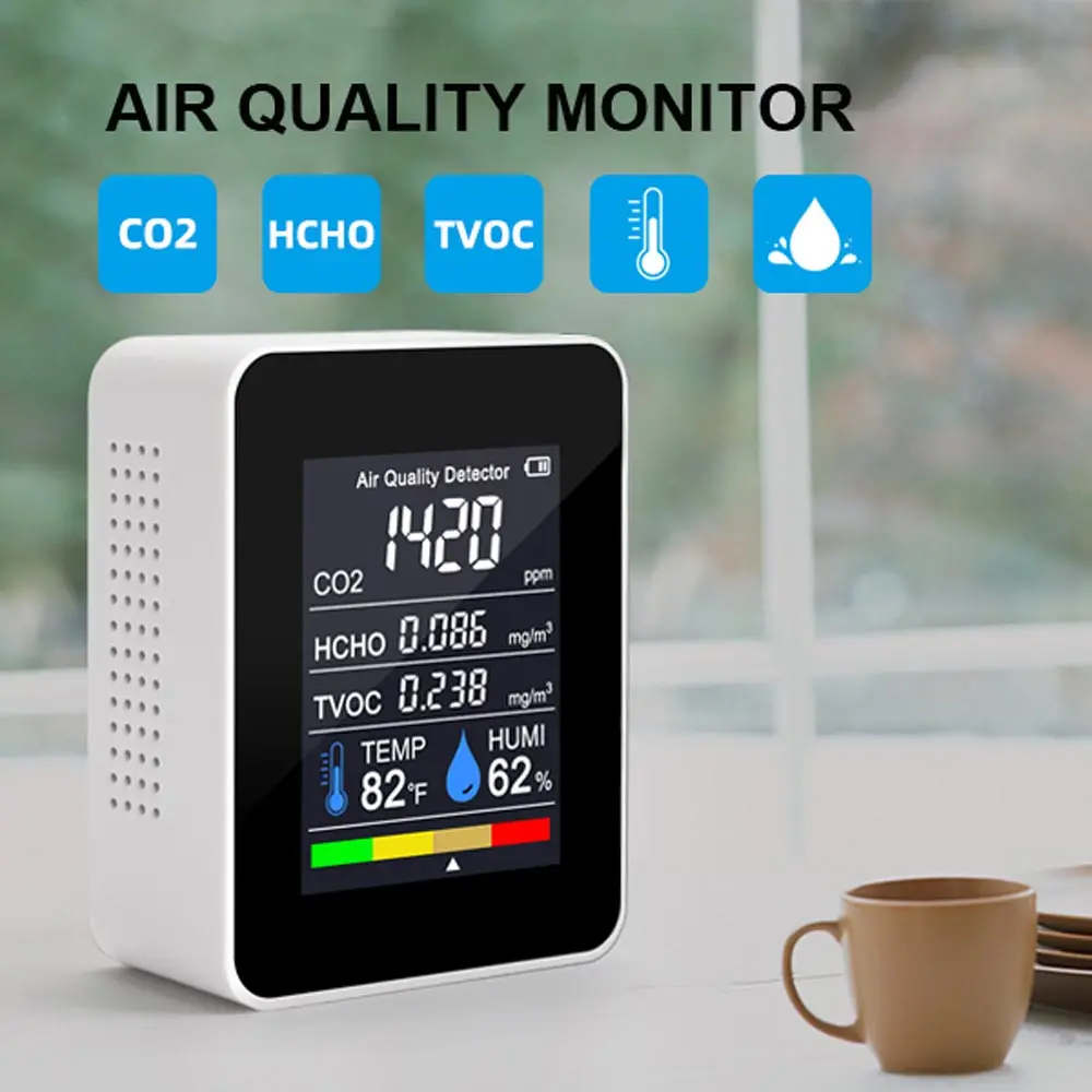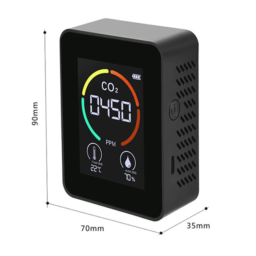 Описание:В тестере газоанализаторе смарт-значение углекислого газа используется воздушный полупроводниковый датчик TVOC для контроля температуры и влажности воздуха, содержания углекислого газа, формальдегида и летучих веществ в воздухе.Это качественный детектор качества воздуха, использующий высококачественный электрохимический модуль обнаружения, с хорошей точностью, стабильной производительностью, сильной устойчивостью к помехам, низким потреблением и долгим сроком службы.Оснащен большим экраном, различные цвета шрифта показывают различное качество воздуха, зеленый 400-450ppm, синий 451-700ppm, фиолетовый 701-1000ppm, желтый 1001-2000ppm, красный 2001-5000ppm.Продукт не нуждается в калибровке, может быть протестирован после запуска и может точно обнаруживать углекислый газ.Характеристики:Название: детектор углекислого газаМатериал: АБС-пластикЦвета: белыйРазмер: 9x7x3.5смЭкран Размер: 2,8 дюймовТип экрана: TFT-LCDРазрешение экрана: 240*240Время отклика: <1sДиапазон температур: от-10 ℃ до 70 ℃Диапазон измерения влажности: 0-99% RHРабочее напряжение: 5 В/1 а адаптер зарядкиМаксимальная мощность: 600mA зарядный ток никель-металл, 3,7 V литиевая батарея источника питания батареиЕмкость аккумулятора: 1200 мАчТип батареи: литиевая батареяСпособ зарядки: USBВремя зарядки: 1 часПримечания:Возможны небольшие погрешности в размере при ручном измерении.Отклонение цвета может отличаться из-за различных настроек монитора, пожалуйста, поймите.Упаковочный лист