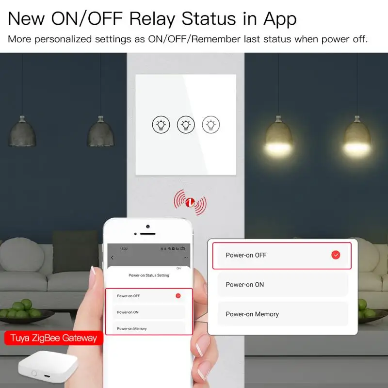 3. Работа с Alexa и Google Home для голосового управления без использования рук с 0%-100% регулируемой яркостью для каждой одной кнопки; Также можно управлять через приложение Smart Life/Tuya в любое время и в любом месте; настройка питания на состояние и переключатель подсветки в приложении Smart Life для реального интеллекта.