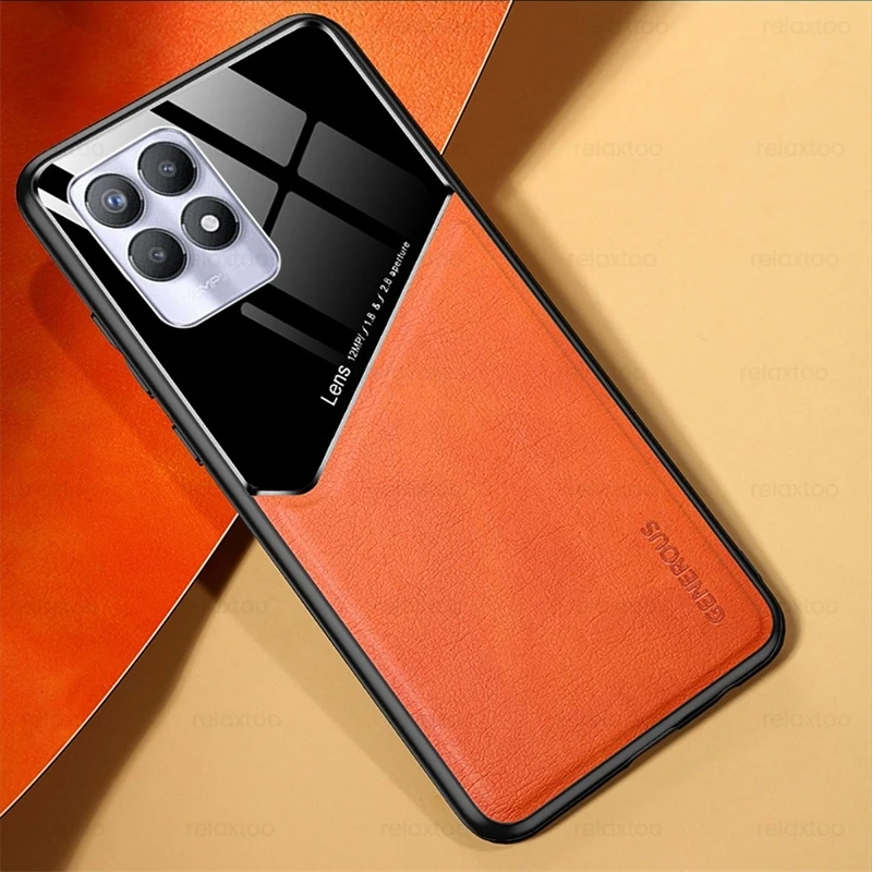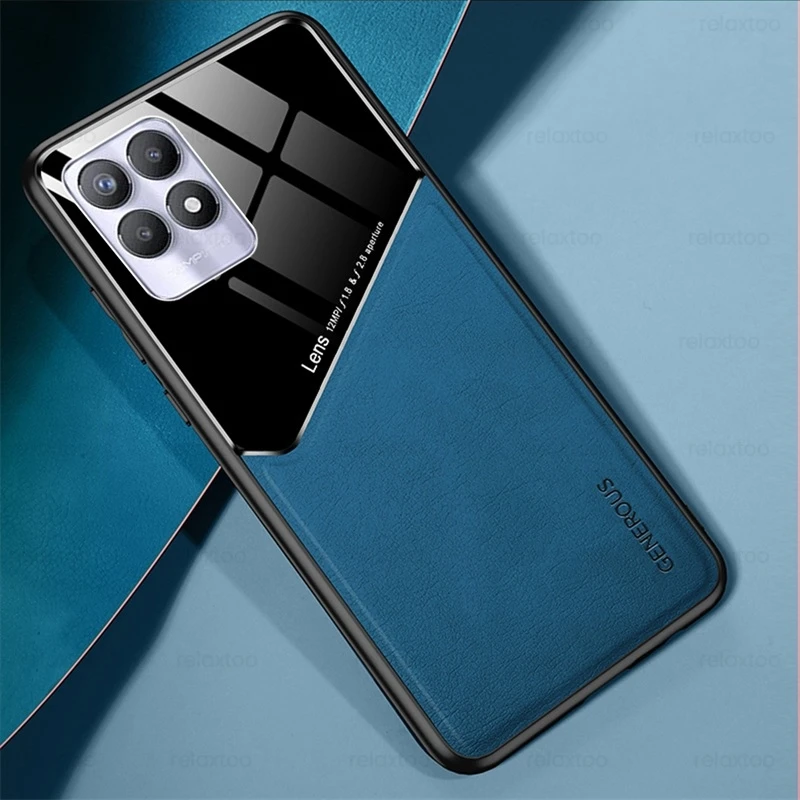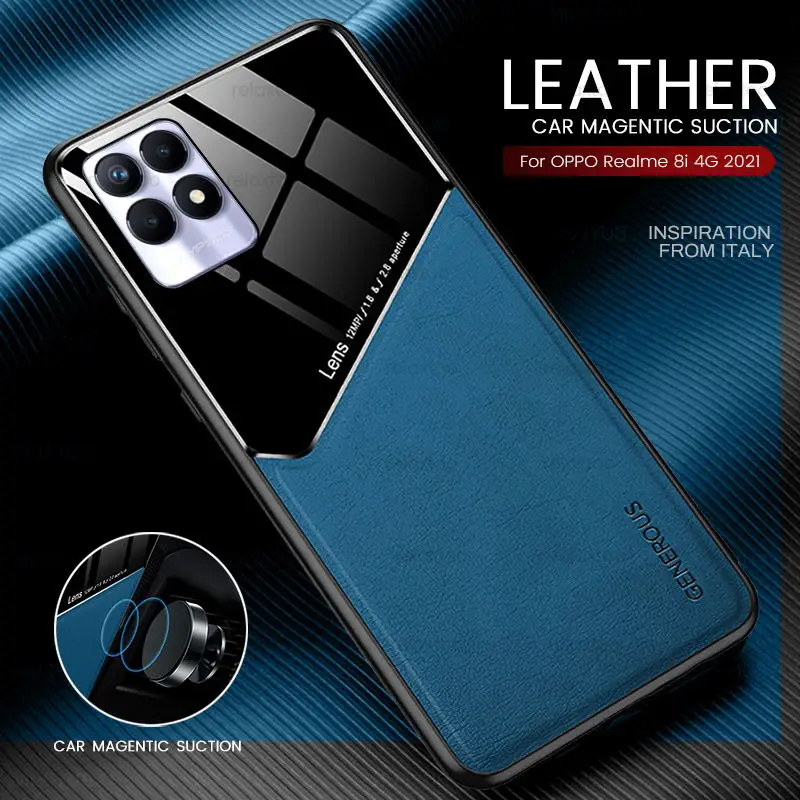 Автомобильный держатель Магнитный чехол для Realme 8i чехол ПК + из искусственной кожи защитный чехол Realme8i Realmi 8i 8 i i8 6,6 ''противоударный бампер Coque
