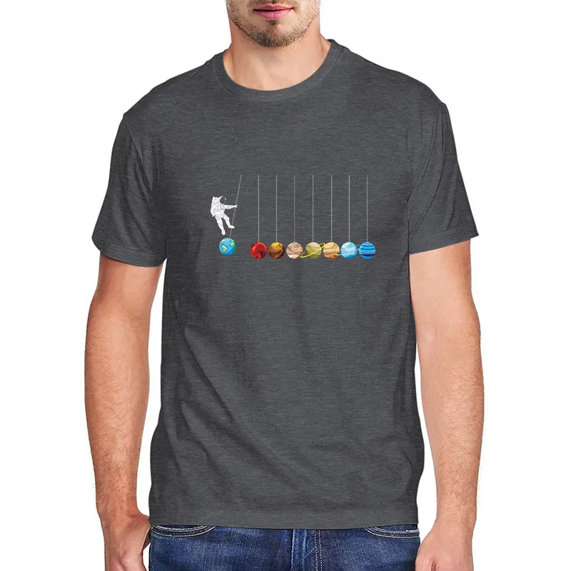 Футболка мужская оверсайз с коротким рукавом, смешная тенниска в стиле ретро, с изображением астронавта, космонавта, планеты, солнечной системы, 100% хлопок