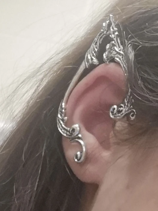 Продавец отправил неверный заказ... К тому же серьга меньше, чем кажется на фото продавца. У меня средние уши. На фото номер 3 - гвоздик снизу, как и должно быть. На фото 4 и 5 - серьга надета на другое ухо и гвоздик оказывается сверху. Но оба случая невозможно носить. А если не надеть как серьгу (то есть не зафиксировать), то украшение падает и топорщится очень сильно