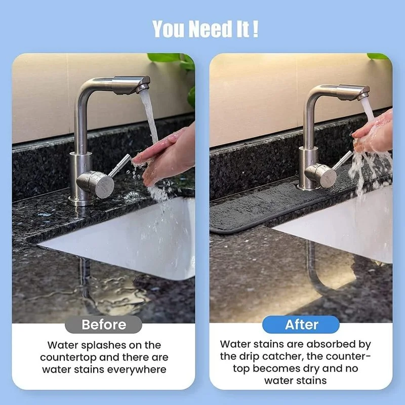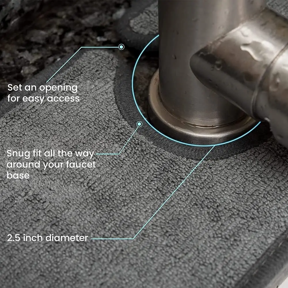 1. Впитывающий Коврик для кухонного смесителя изготовлен из микрофибры, которая обладает высокой водопоглощающей способностью. Он пушистый, гибкий, устойчивый к морщинам, износостойкий и мягкий на ощупь. Он очень подходит для использования в кухнях и ванных комнатах.