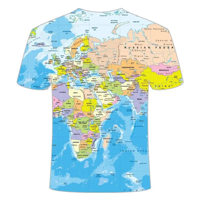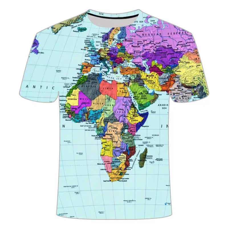 Мужская футболка с 3D-принтом карты мира, размеры S-6XL