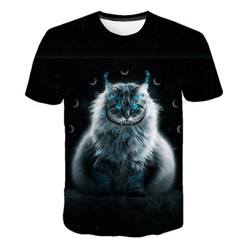 Футболка с 3D-принтом кошки, для мужчин и женщин, летние Забавные т...