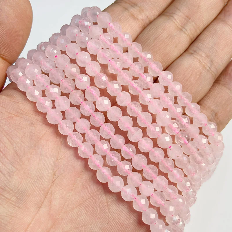 Розовые бусины для браслета 6 мм, натуральный граненый камень из розового кварца, халцедона, анелита, кошачий глаз, разделитель, каменные бусины для браслетов, ювелирные изделия ручной работы