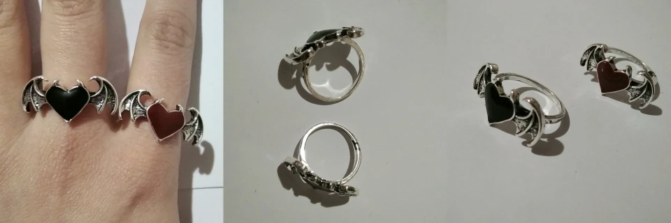 Корейские модные готические кольца в форме сердца крыла для женщин, винтажные кольца в стиле хип-хоп, панк, женские кольца в форме дьявольских крыльев, праздничные кольца, подарочный набор ювелирных изделий