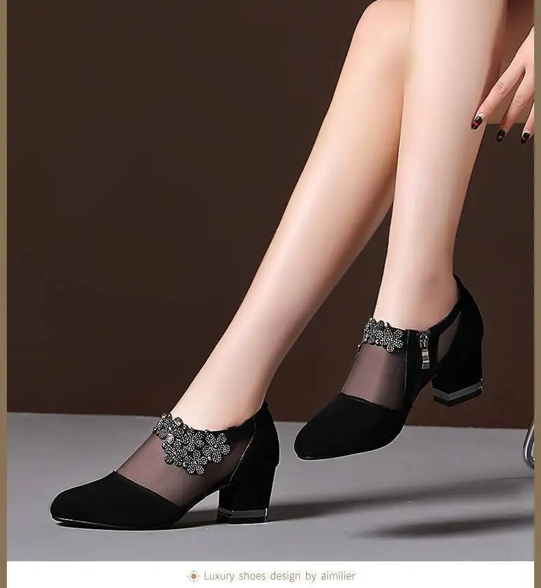 Женские сетчатые босоножки на низком каблуке, Размеры 35-43