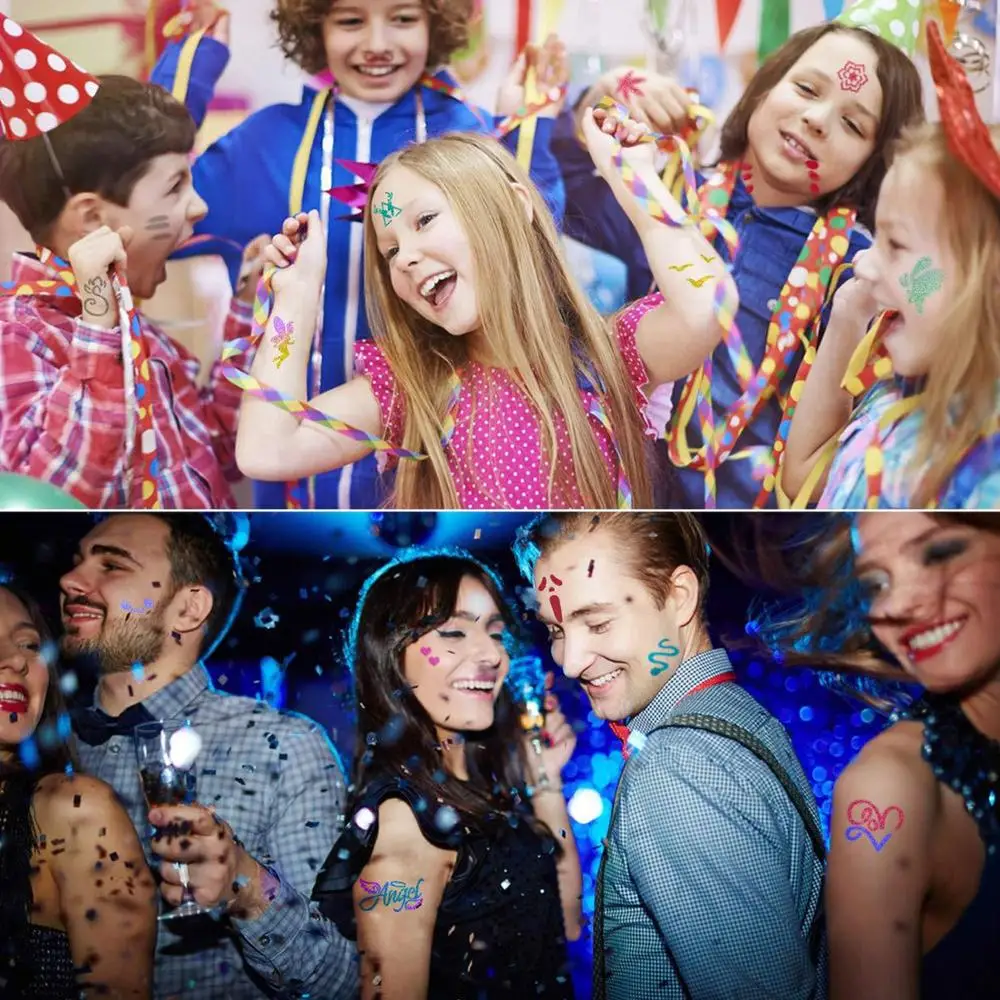 Набор блестящих татуировок 182 шт., 24 цвета, 30 уникальных тематич...