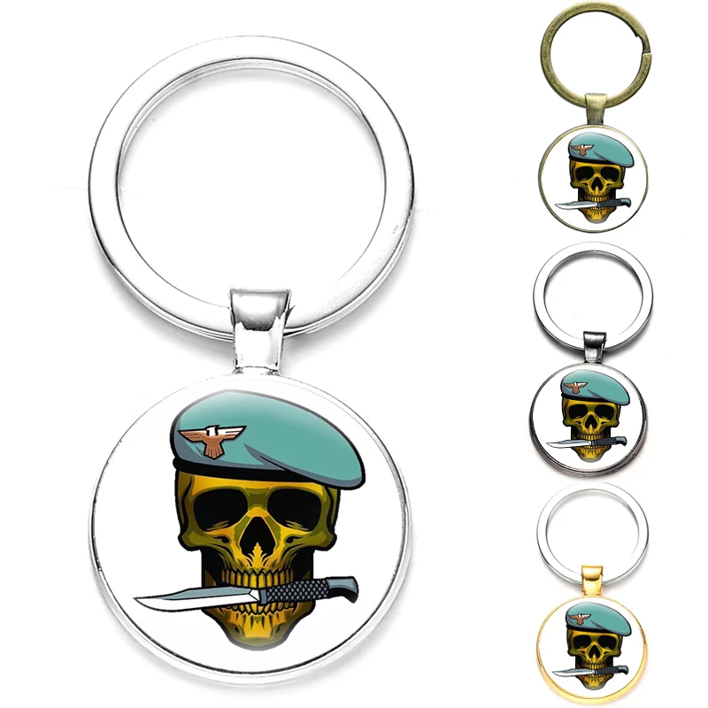 Забавный крутой брелок для ключей с мультяшным солдатиком черепом искусство фото стеклянный купол милые Мультяшные фигурки брелок Металлический брелок унисекс ювелирные изделия подарок