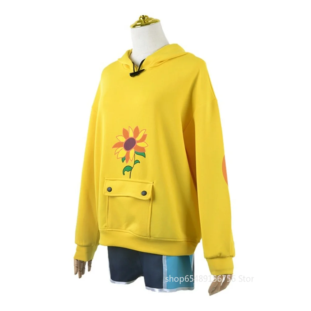 ♥Посылка включает в себя: 1 желтая толстовка с капюшоном, 1 шорты, 1 жилет, 1 Шпилька, 1 черный бант, 1 пара носков.