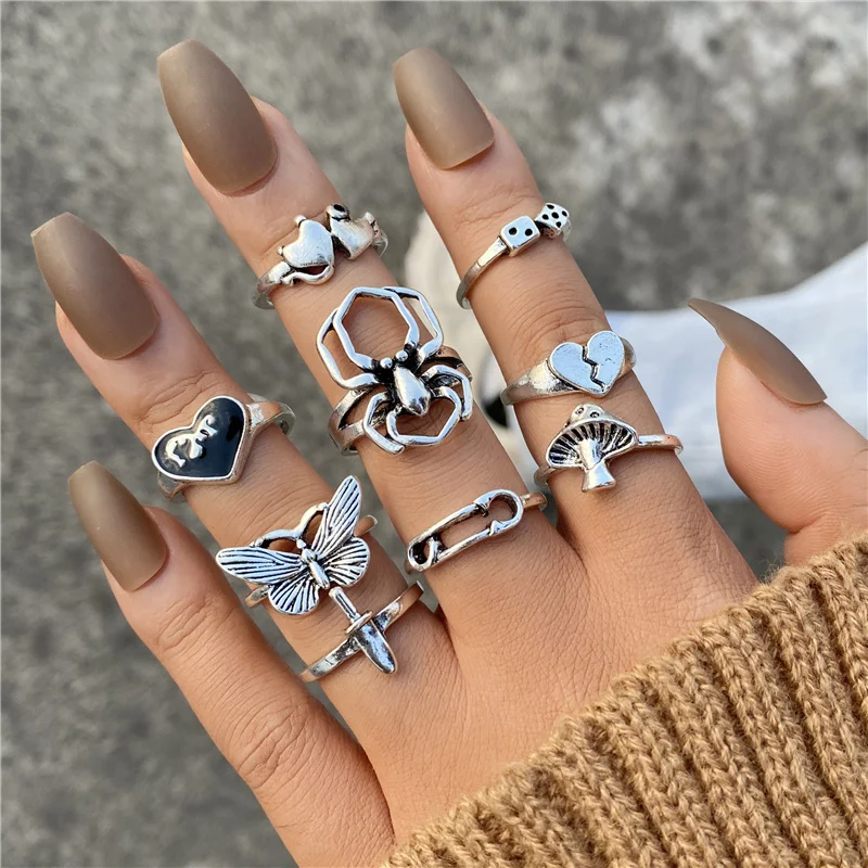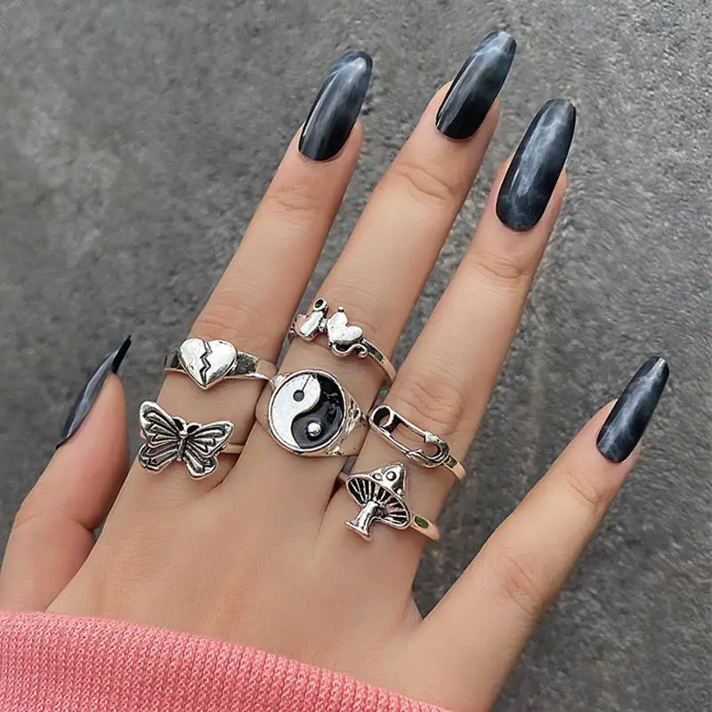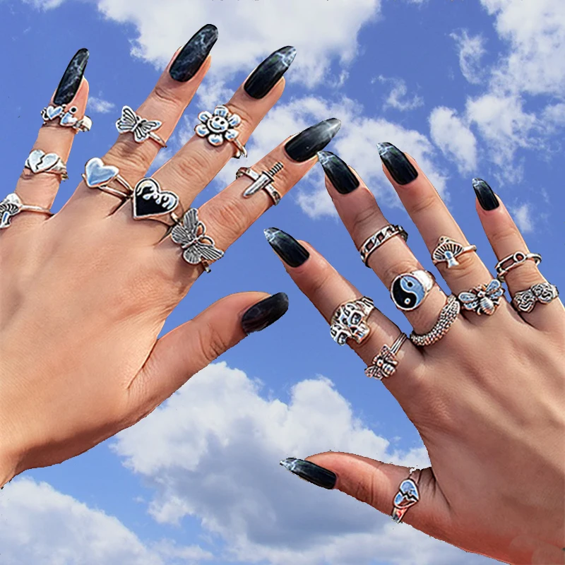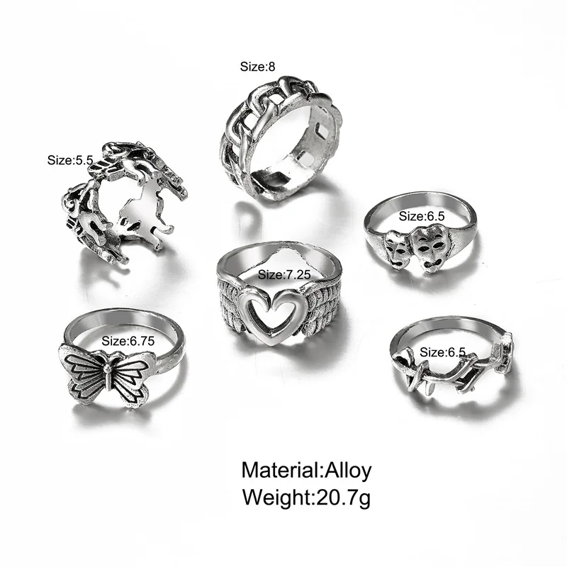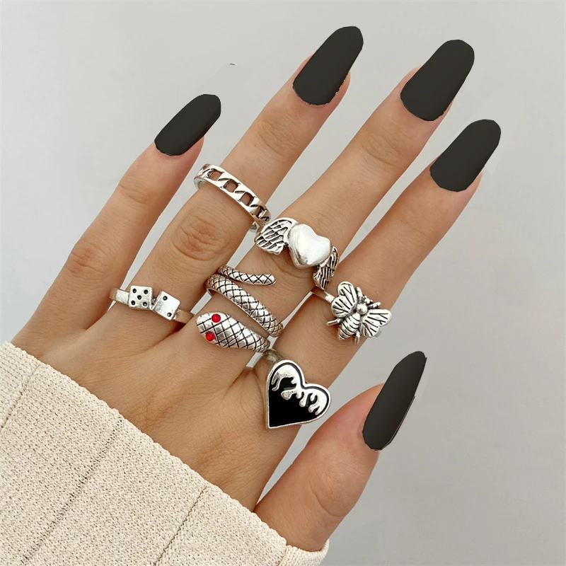 Женский комплект колец в стиле панк и готика, черное кольцо на палец в стиле ретро с серебряным покрытием в виде бабочки и пчелы, Ювелирное Украшение для вечерние