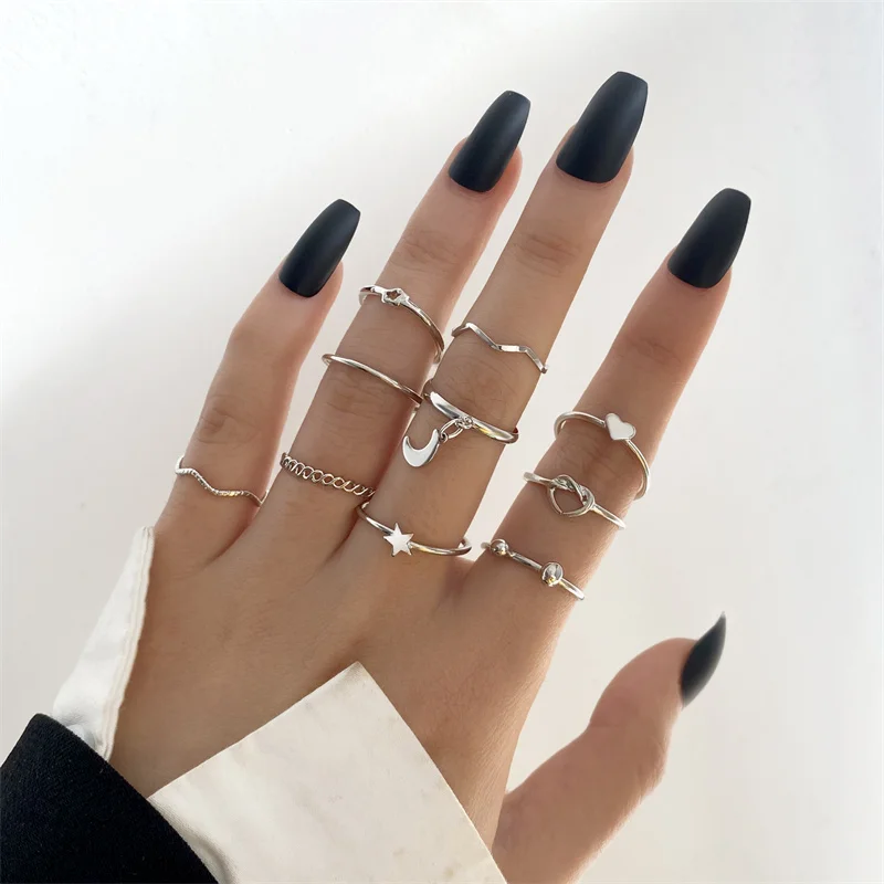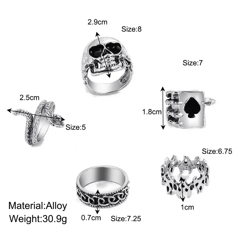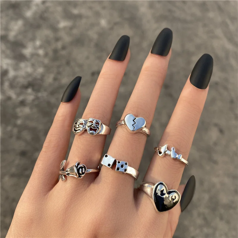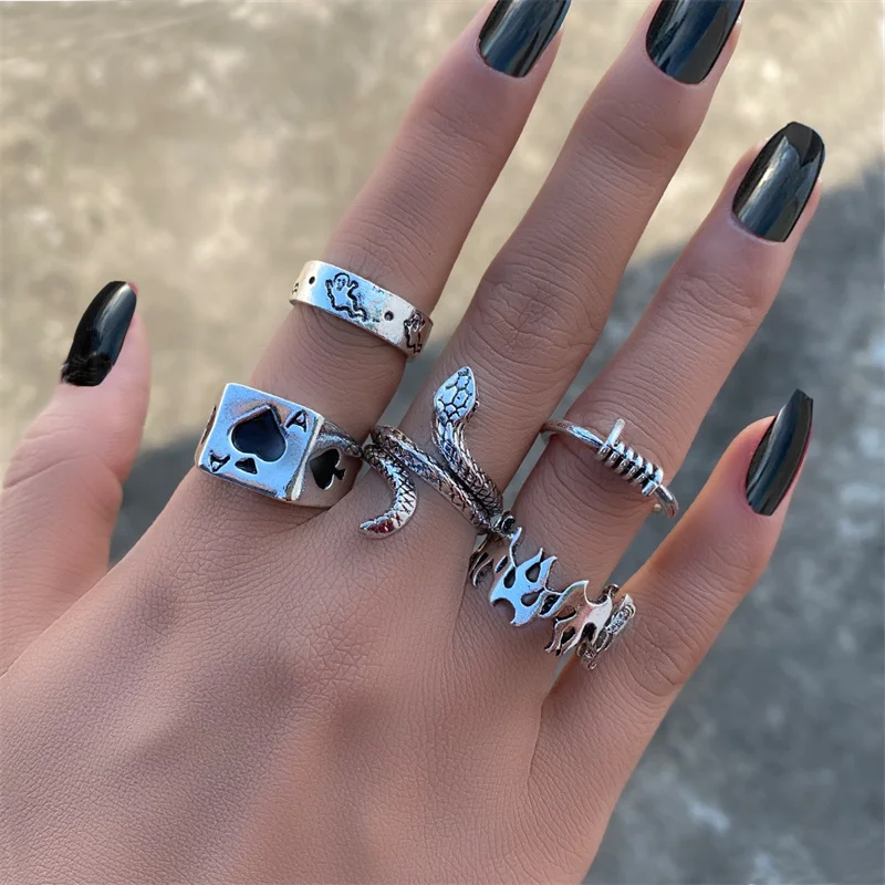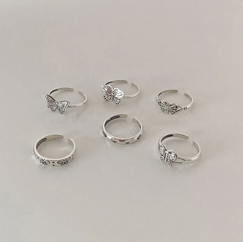 Женский комплект колец в стиле панк и готика, черное кольцо на палец в стиле ретро с серебряным покрытием в виде бабочки и пчелы, Ювелирное Украшение для вечерние