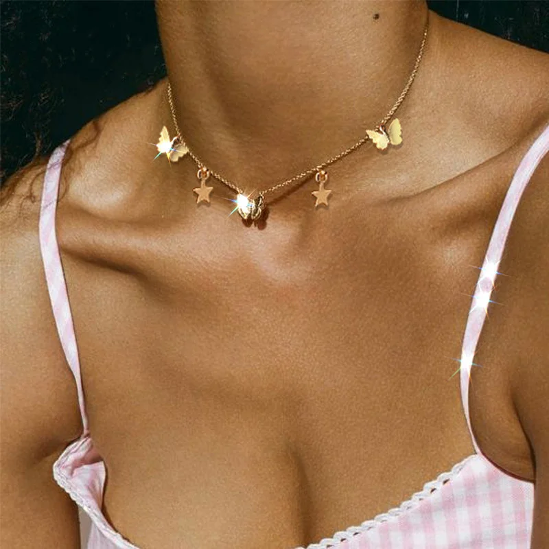 Новое блестящее ожерелье с бабочкой, женское изысканное Двухслойное...