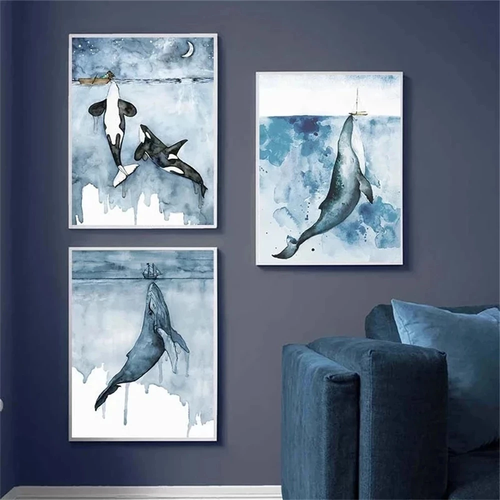 Абстрактный поцелуй из океана КИТ животное холст картина плакат и печать синий океан настенные картины скандинавский Декор для гостиной