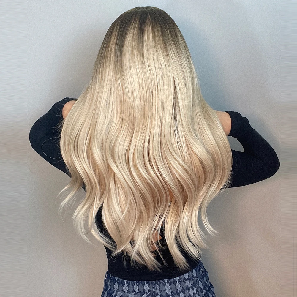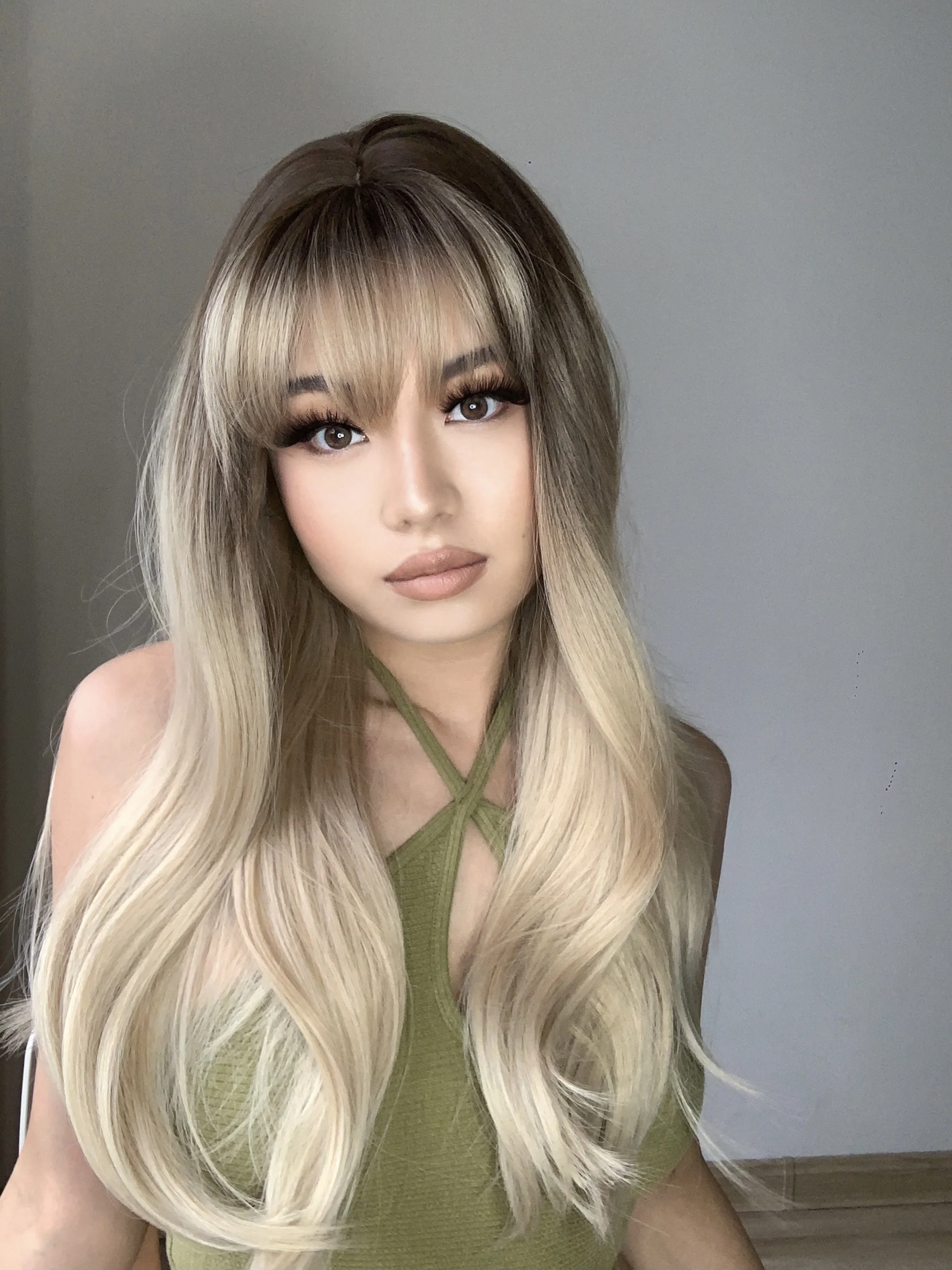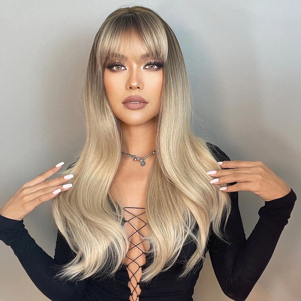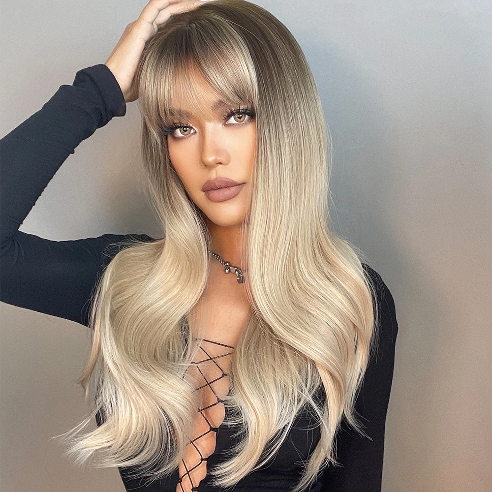 Длинные волнистые синтетические парики с челкой, парики с Омбре из коричневых светлых натуральных волос для женщин, парики для косплея, парик термостойкий для вечеринки
