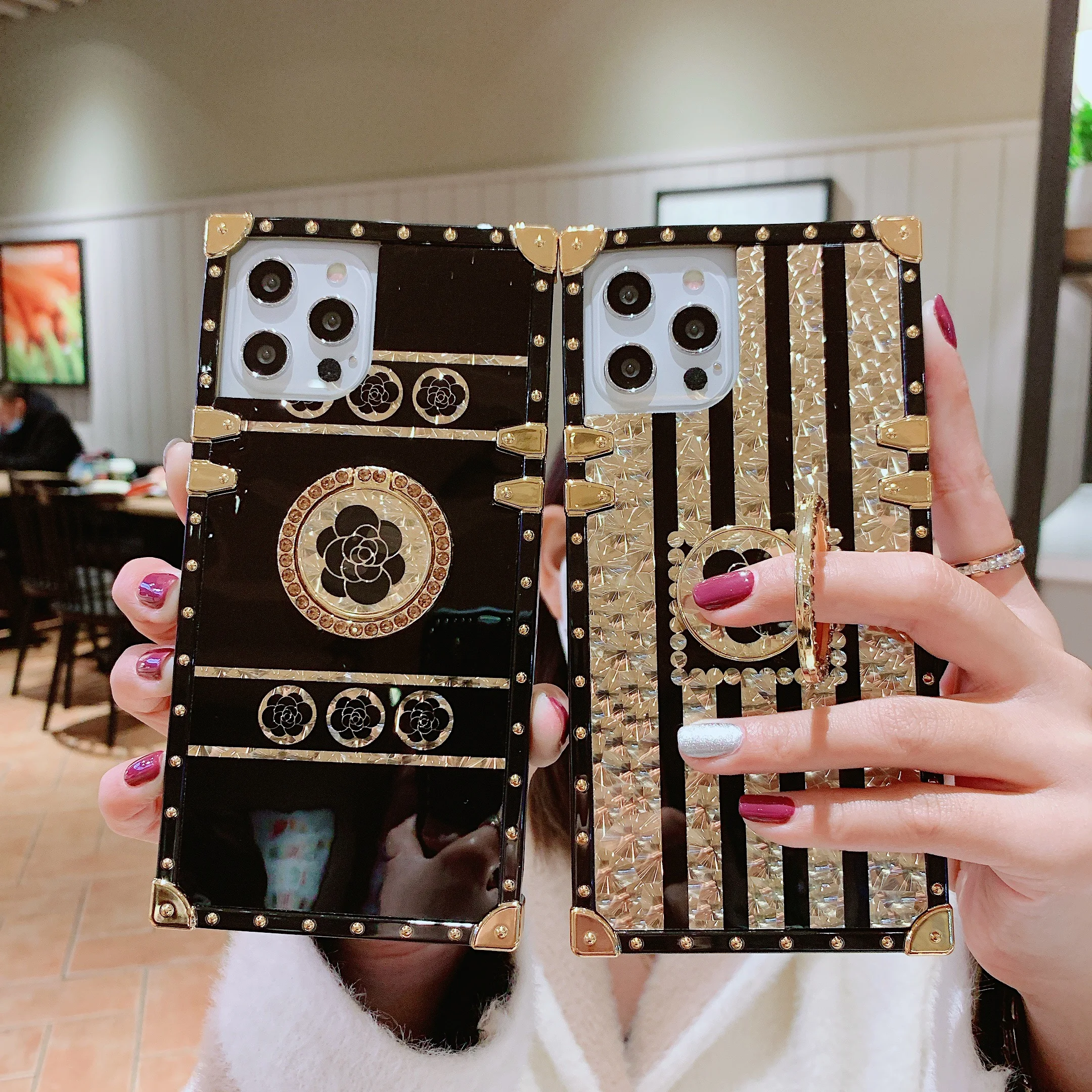2. Особенности: Роскошный брендовый Винтажный чехол с квадратным украшением в виде цветка и кольцом-держателем