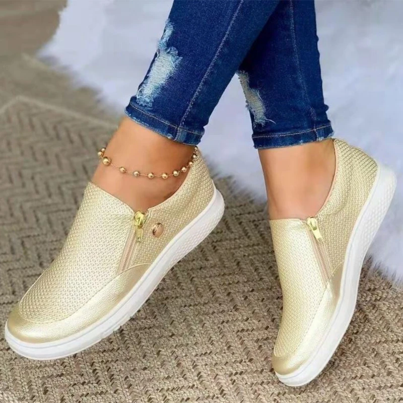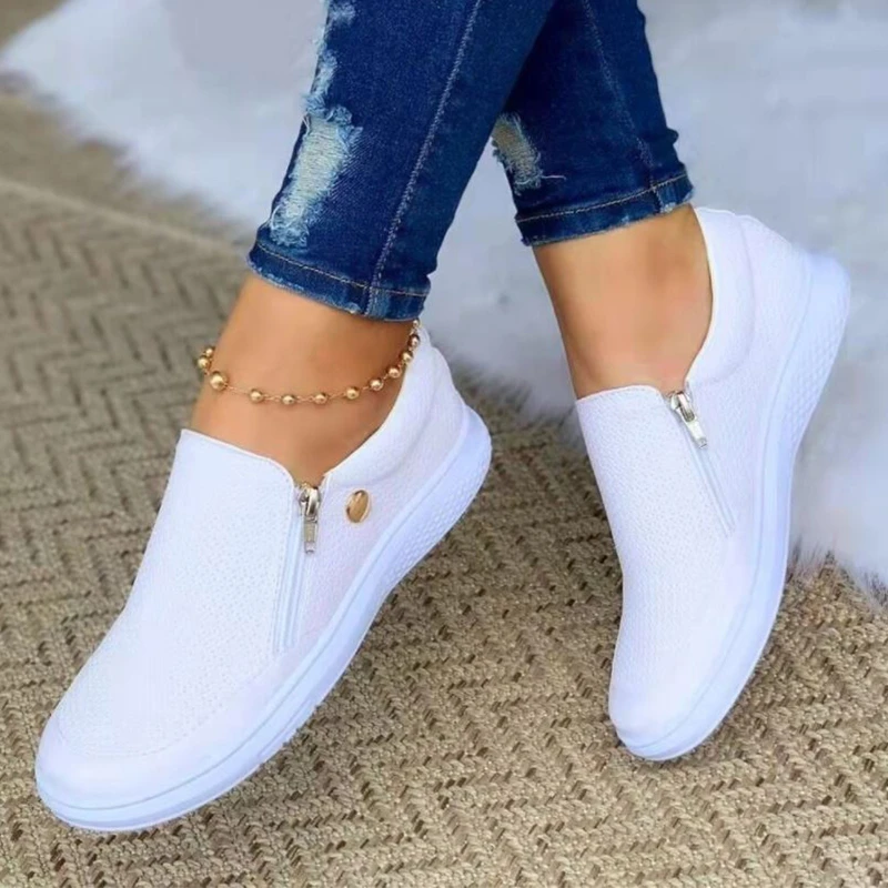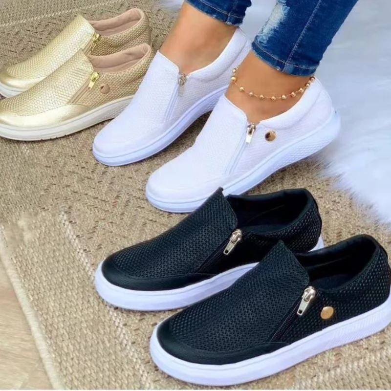 Кроссовки женские сетчатые на платформе, Вулканизированная подошва, без шнуровки, Повседневные Удобные дышащие, на молнии, универсальная обувь