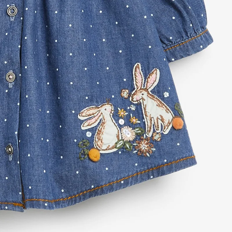 Детское хлопковое джинсовое платье, с аппликацией, в виде Банни