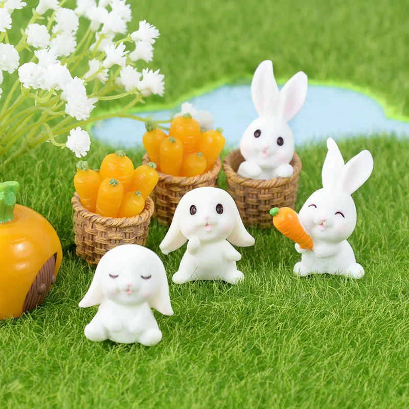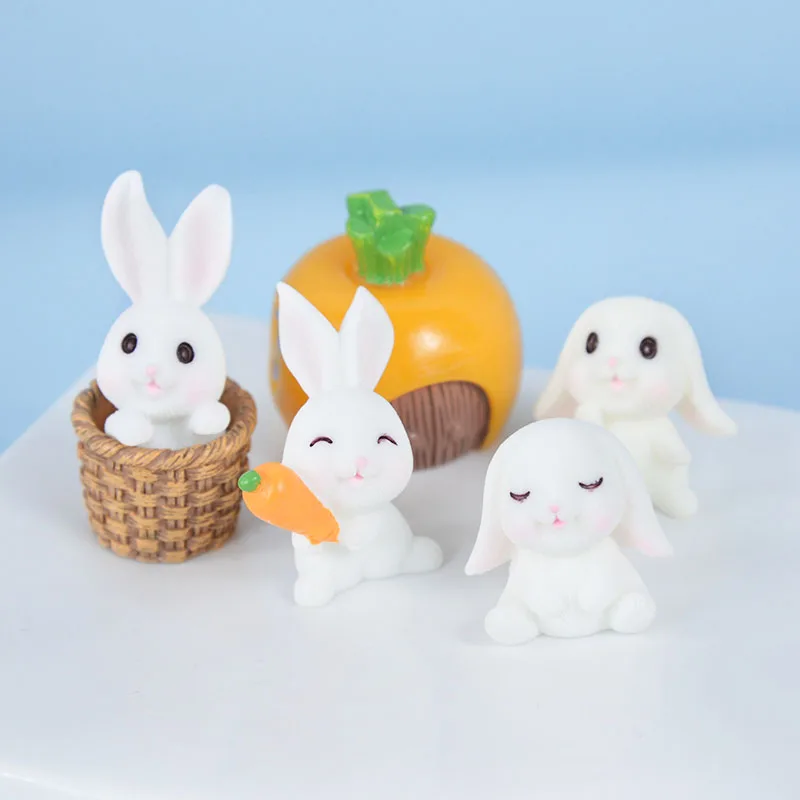 4 шт., Фигурка кролика, украшение, миниатюрная модель для творчества, украшение для дома, милые аксессуары, украшение для рабочего стола и сада