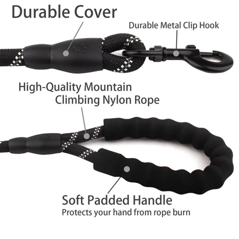 Светоотражающий прочный поводок для собак, длиной 1,5 м, с удобной мягкой ручкой