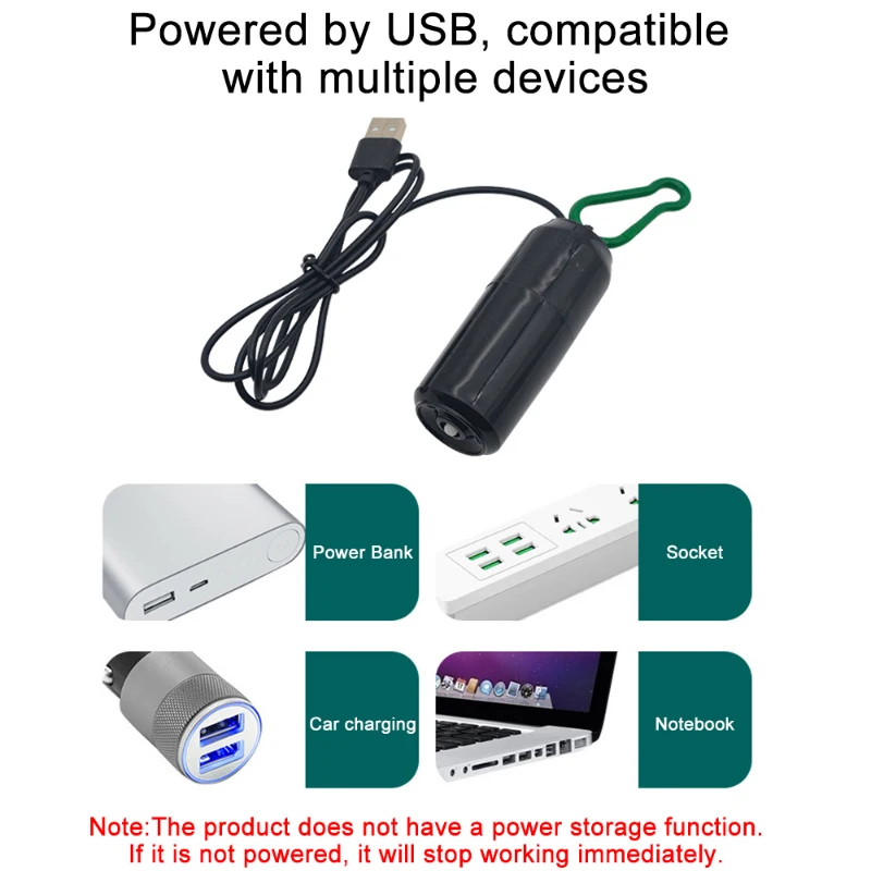 -Размер: 8х3, 5 см -Цвет: черный/белый/зеленый/розовый -Материал: пластик + медь -Питание от: USB, 5v 1A -Мощность: 1 Вт -Длина шнура питания: 90 см -Длина воздушной трубки: 100 см -Количество насосов: Одиночный насос/двойной насос (опционально) -Примечание: Продукт не имеет функции зарядки, как только источник питания потерян, он перестанет работать. Посылка включает в себя: 1 x аквариумный воздушный насос