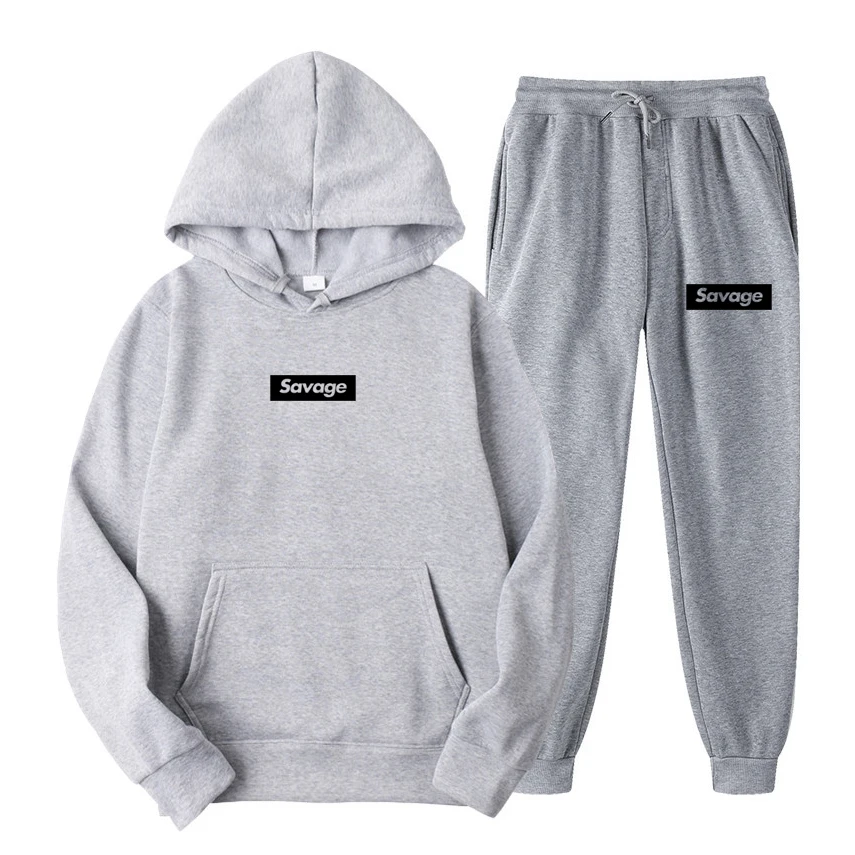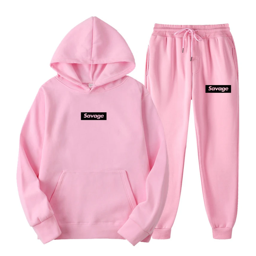 Спортивный костюм Savage из двух предметов для мужчин и женщин, Повседневный пуловер с длинным рукавом и штаны, флисовый спортивный костюм с капюшоном, 2021