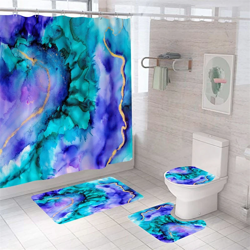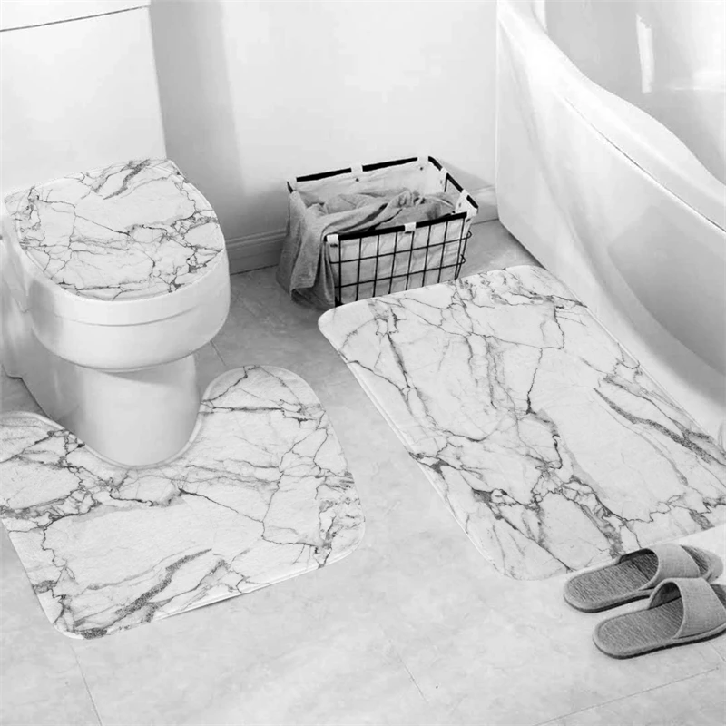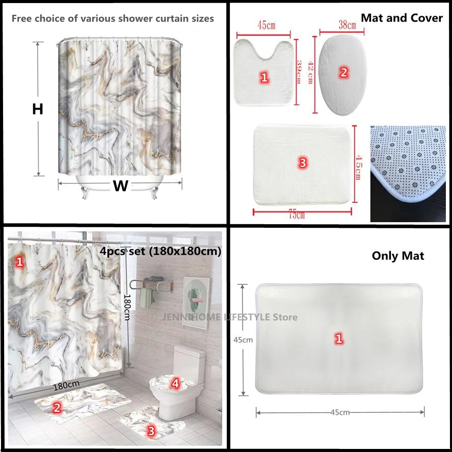 Современная мраморная занавеска для душа из водонепроницаемой полиэфирной ткани, Роскошная 3D занавеска для ванной, крышка для унитаза, коврик для душа