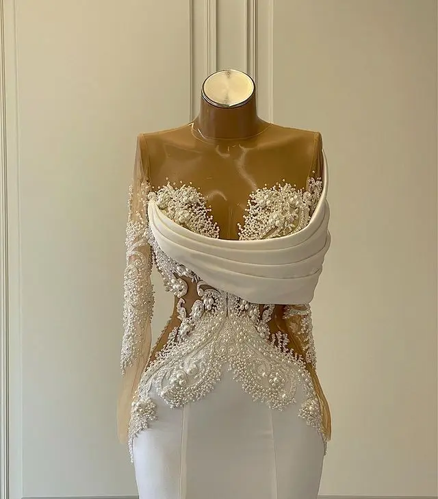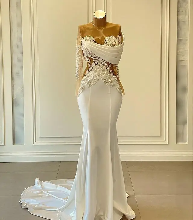 Платье-Русалка с длинным рукавом и вырезом лодочкой