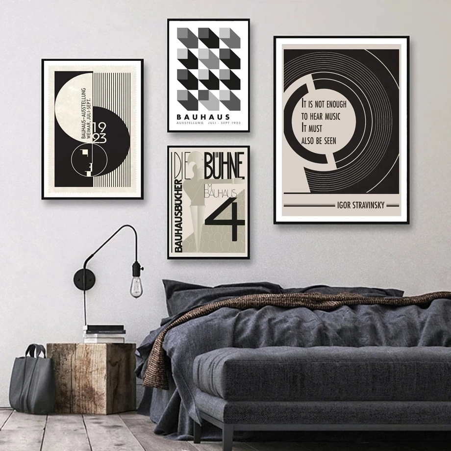 Bauhaus, абстрактные Геометрические линии, настенная Картина на холсте, постеры и принты, декор для гостиной в скандинавском стиле, винтажное украшение