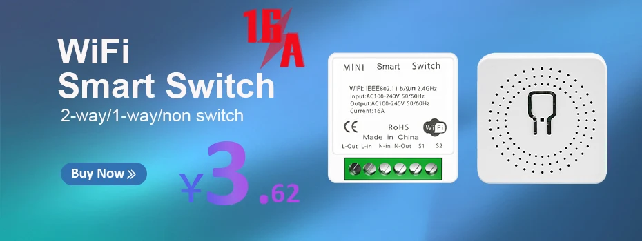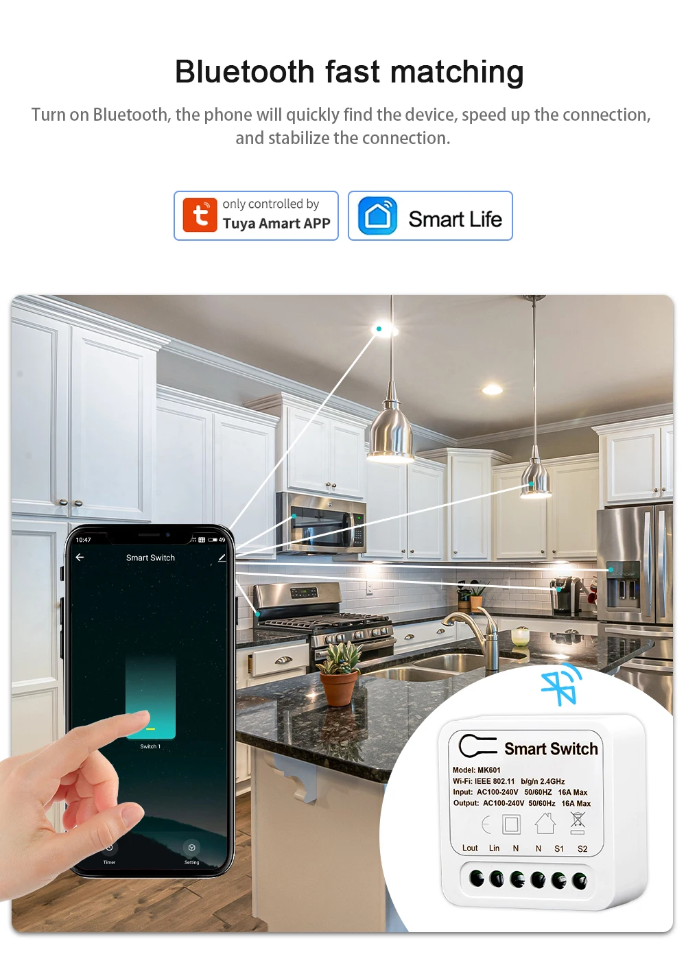 Умный мини-переключатель, 16 А, Wi-Fi, Bluetooth, два режима