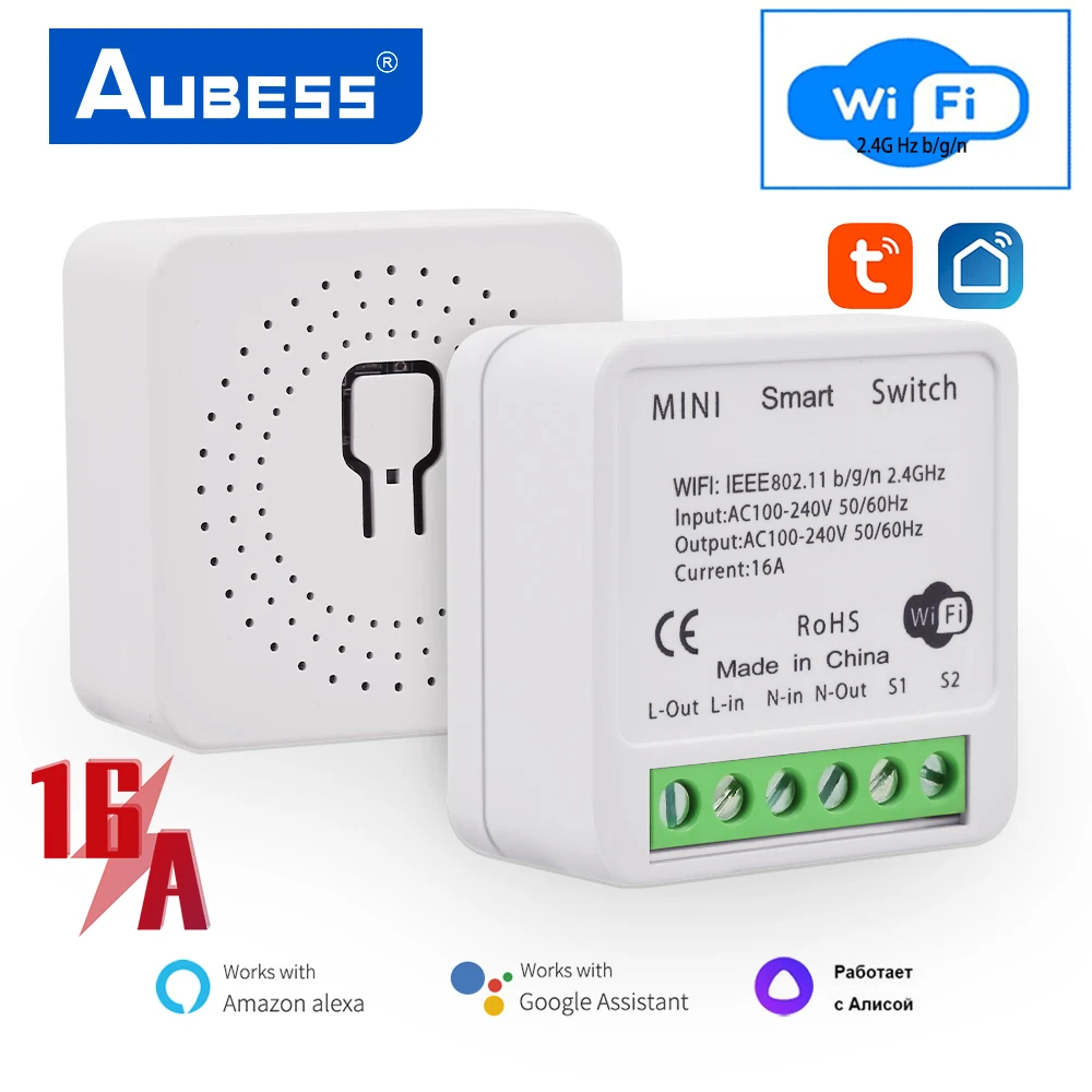 Умный мини-переключатель Aubess, 16 А, с поддержкой Wi-Fi