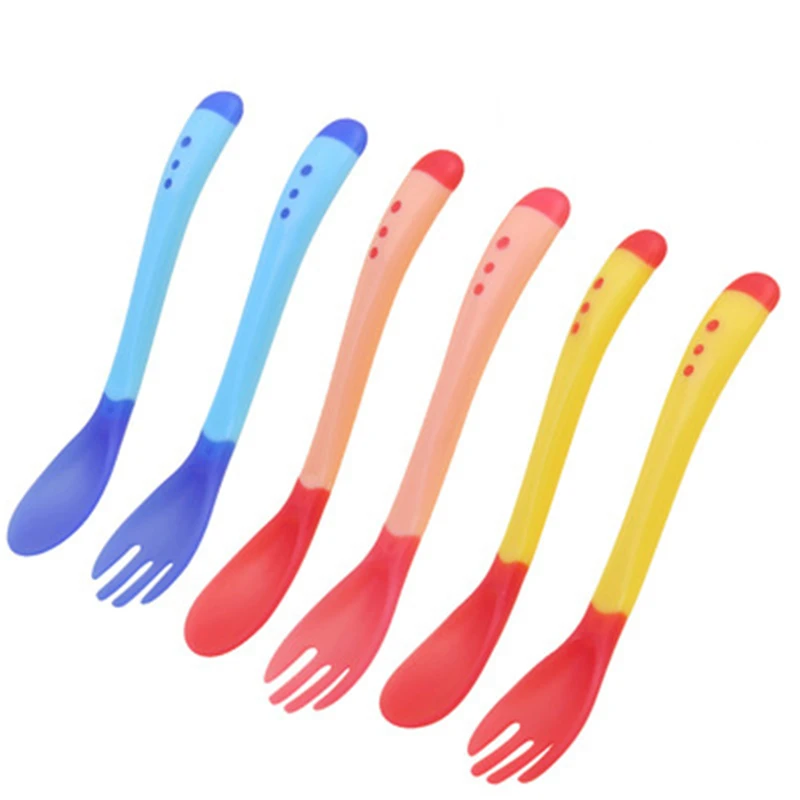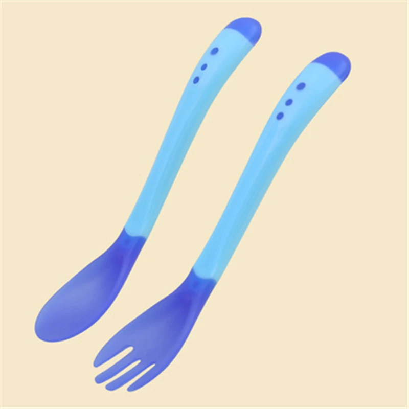 Пищевая термохромная вилка, ложка, силиконовая Мягкая ложка, высокотехнологичный детский стол