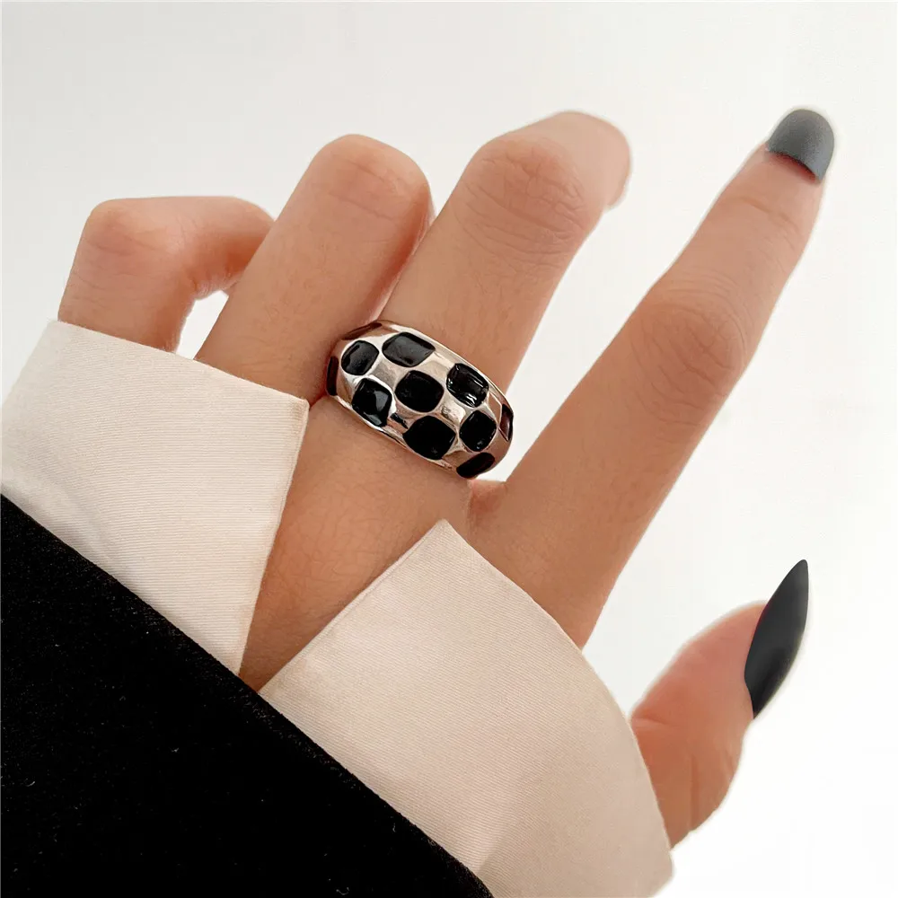 2021 винтажный дизайн черно-белые шахматные стальные открытые кольца в форме сердца для женщин на Хэллоуин вечеринку для девочек необычные ювелирные изделия