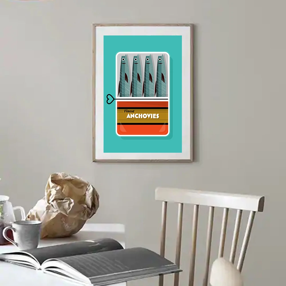 Домашний декор, Мультяшные сардины, картины на холсте, классический 60-х годов, ретро, забавная кухня, настенный плакат, картина для кухни, ресторана