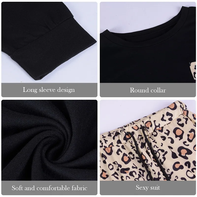 Женские леопардовые костюмы для дома, Осенние повседневные футболки...